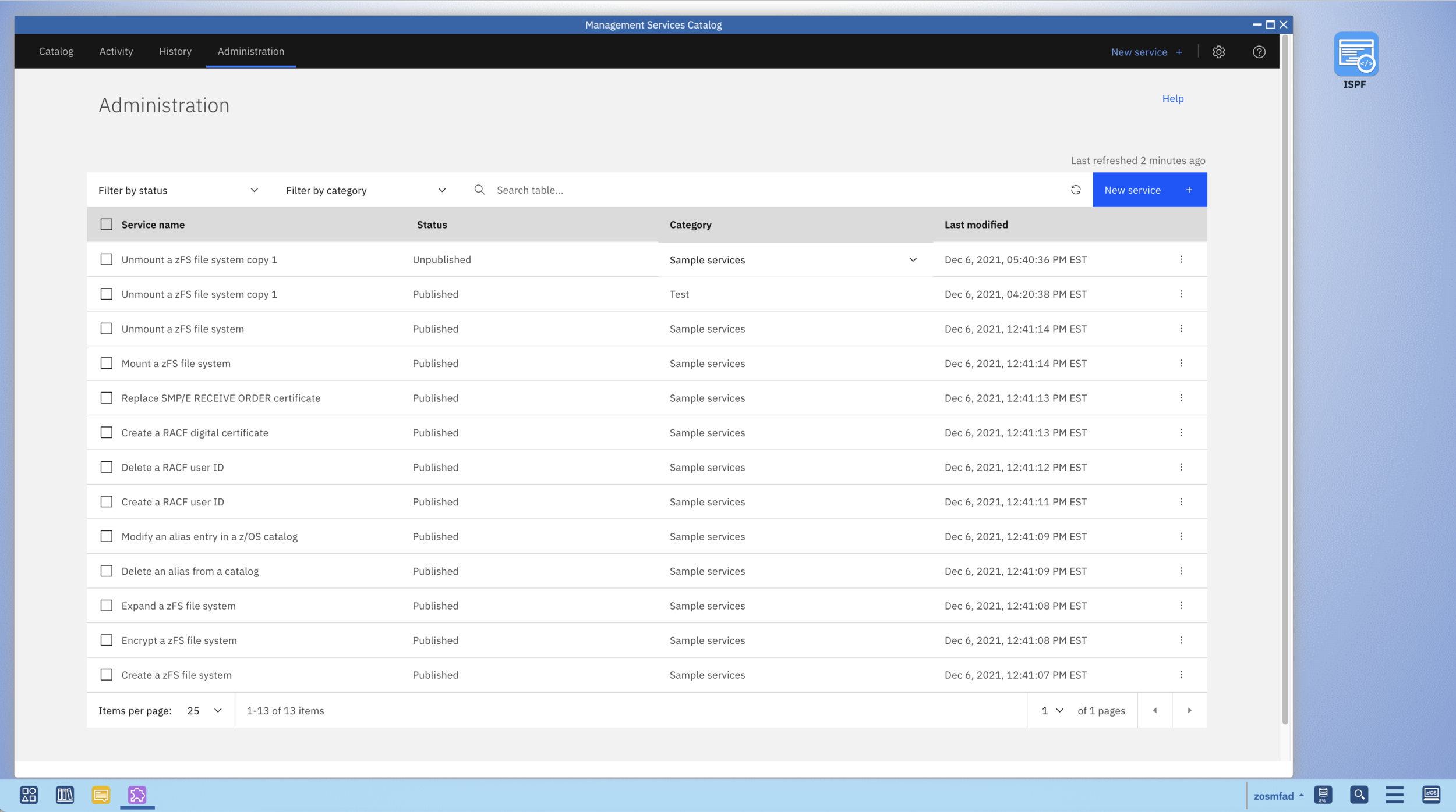 Our team was comprised of one design lead, two UX designers (I being one of them), two researchers and one visual designer. Due to the product release cycle, we were given a year to deliver our new product. To ensure we delivered on time, our team practiced a very formal scrum methodology and broke each area of our product down into bite-size scenarios to work on in our two week sprints. Each design team member took ownership of a specific area of the product to design for. My design objective was to create an easy-to-use, one-stop-shop service administration page that allows for system programmers to be able to manage their services from start to finish.